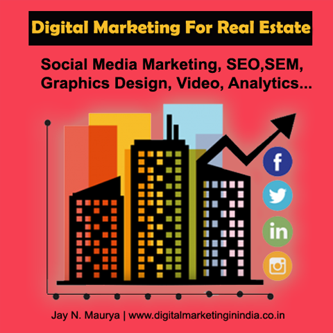 For decades, the real estate industry was one built on personal relationships and word of mouth. While your smile and handshake are still important tools, today,s realtors need more advanced techniques to stand out from competitors. The real estate industry has moved into the digital age. Today,s renters and home buyers use the internet as their primary source of information, searching for properties and realtors online. Nearly half of all buyers discover their new homes online. If you are a property owner or real estate agent, your digital presence is just as important as your personal network. Our marketing services have helped Real Estate Owner and agents to achieve their target goals and improve their digital presence. Our Services includes following : - Regular Updation of all social media channels with graphic design contents. - Posting of Flat's for sale in all India Groups & lead generation. - Posting and sharing of weekly blog related to your business , - Website optimisation for search engine marketing . - Google first page ranking of website in relevant keywords. - Website organic traffic generation and monitoring through Google Analytics, - Posting of customised white board video related to business for brand building and boost sale.
